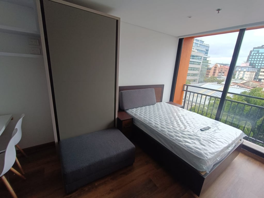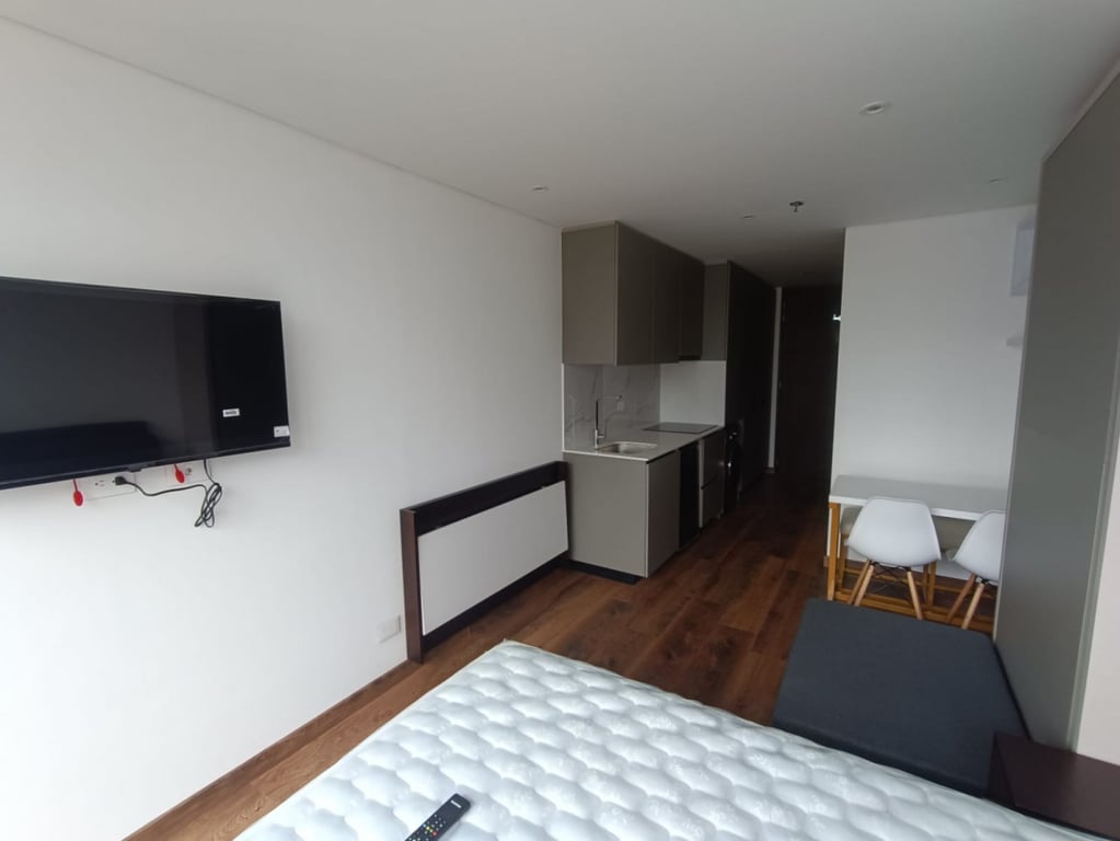 Moderno apartaestudio amoblado en el norte de Bogotá, cerca al Parque de la 93, el edificio tiene diseño arquitectónico de vanguardia, acabados de lujo y todos los espacios fueron estratégicamente pensados para el uso y disfrute de los residentes. Lobby tipo hotel, gimnasio dotado, parqueadero cubierto, zonas de lunch y coworking. Fácil acceso por las carreras 11 y 15, calles 100 y 94 una zona que brinda toda la comodidad de vivir la ciudad con parques, supermercados, teatro, cinema y gastro-bares.