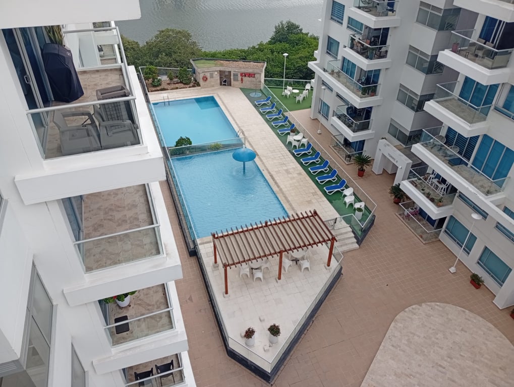 Apartamento en excelente estado, vista hacia el mar, pocos pasos de la ciudad vieja. El edificio cuenta con cómodas zonas comunes y sociales, vigilancia las 24 horas.