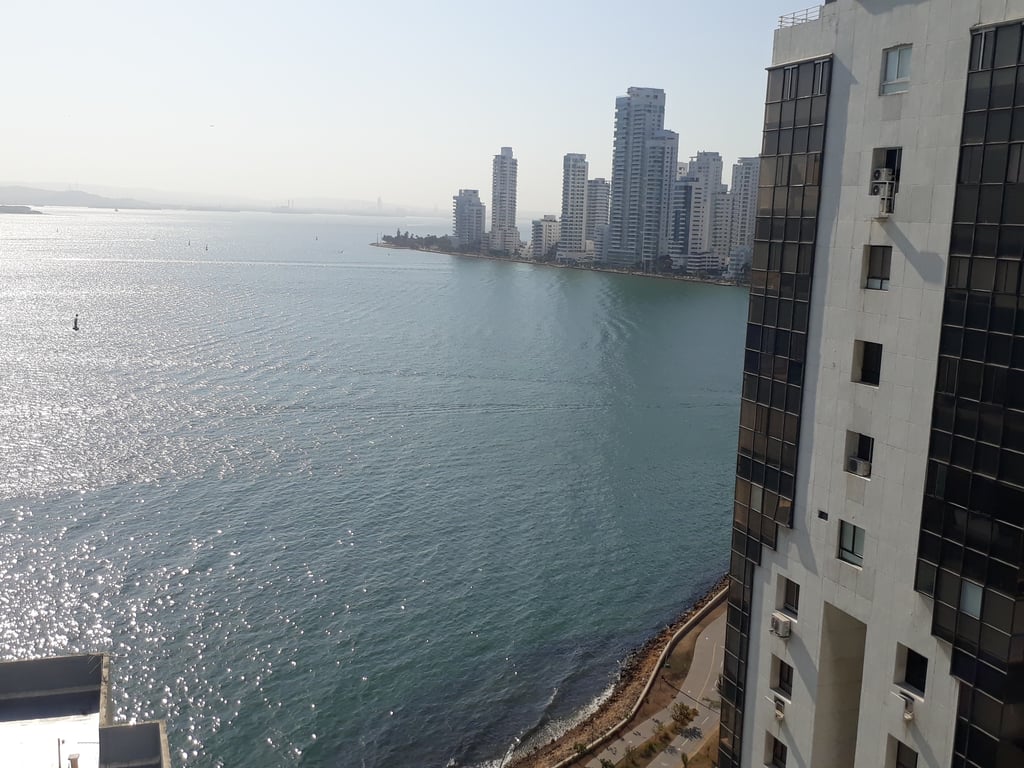 Amplio apartamento, en muy buen estado, bien conservado, buena distribución, con buenos acabados, buena ventilación e iluminación, con balcón, closet en sus alcobas, en edificio con portería, vigilancia las 24 horas, ubicado en el excelente barrio de la ciudad, buenas vías de acceso, a pocos minutos del centro histórico, aeropuerto Rafael Núñez, playas de Marbella, cerca de centros comerciales, supermercados, parques e iglesias, sector de mucha afluencia de turistas, monitoreo policial permanente.
