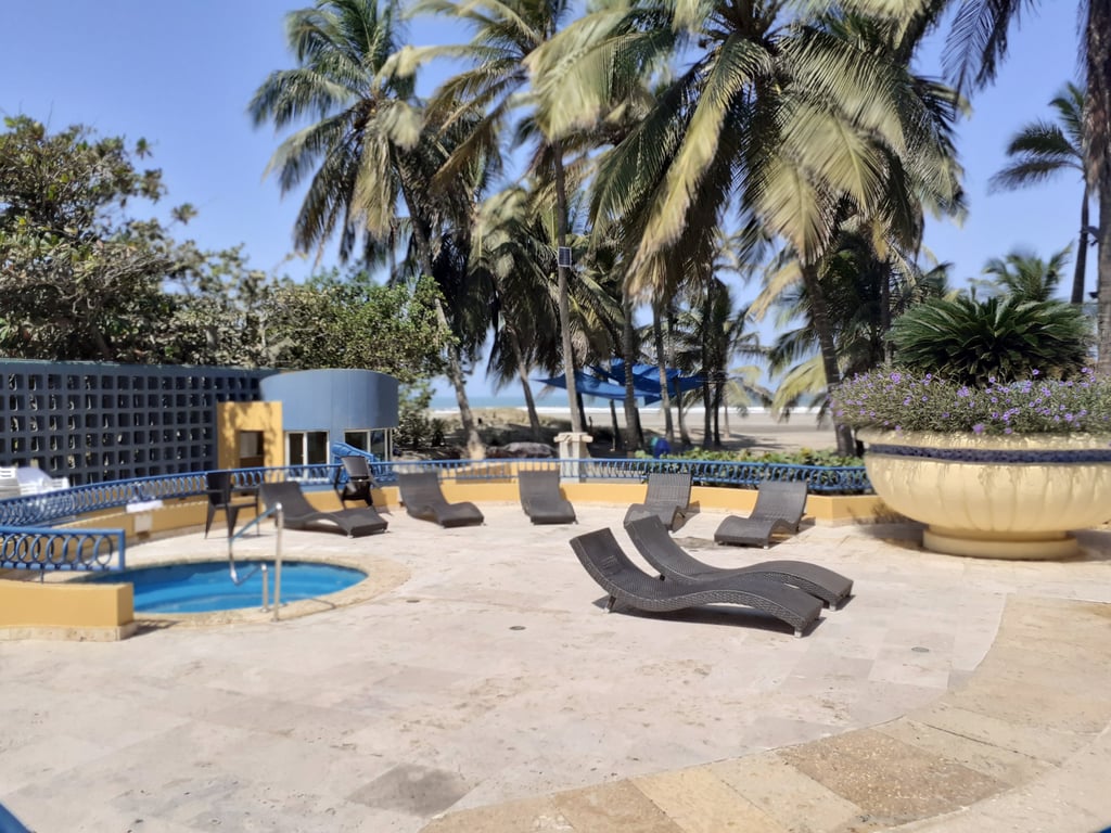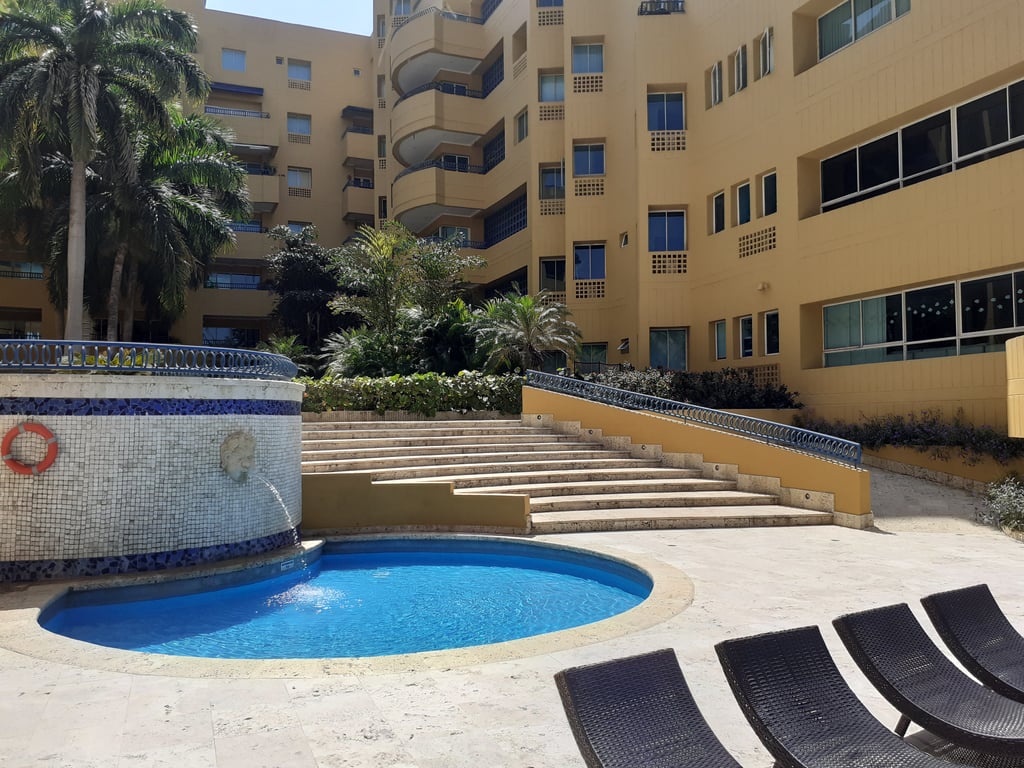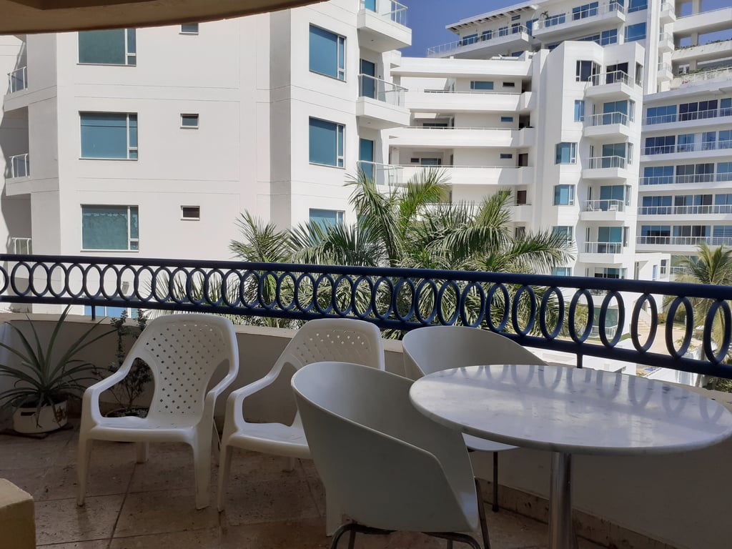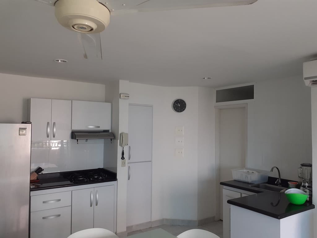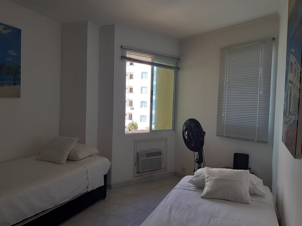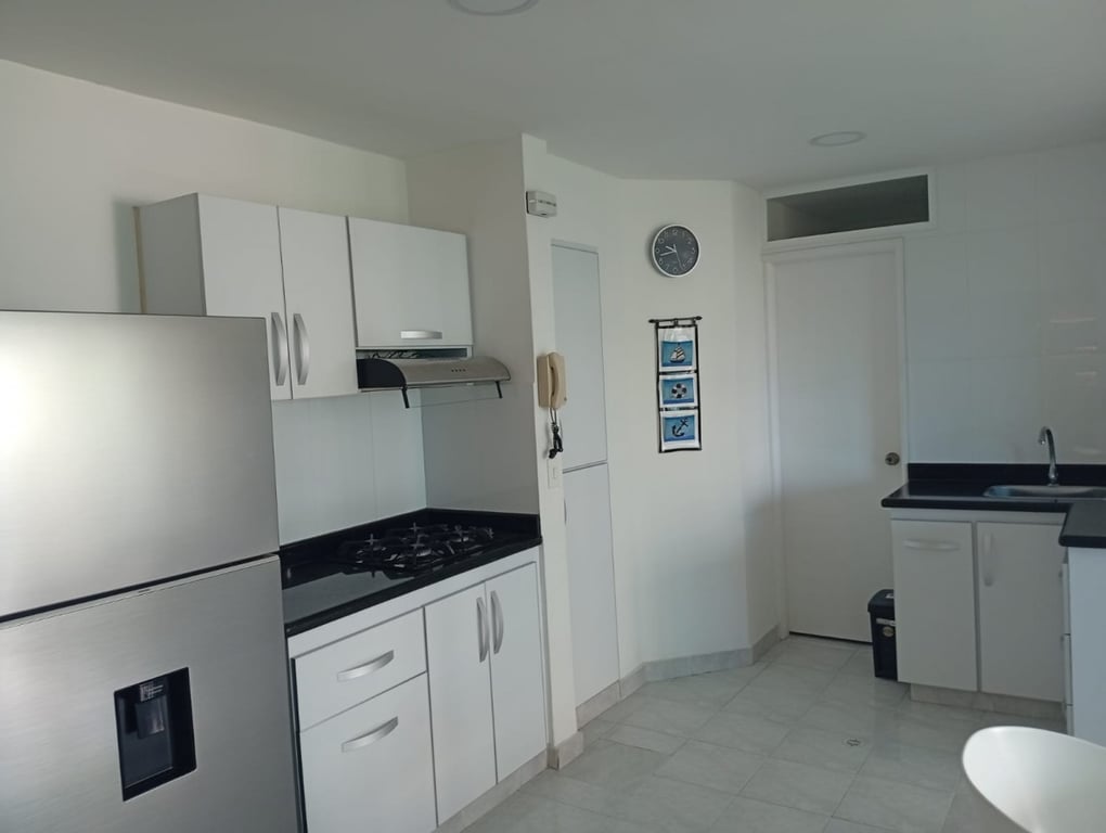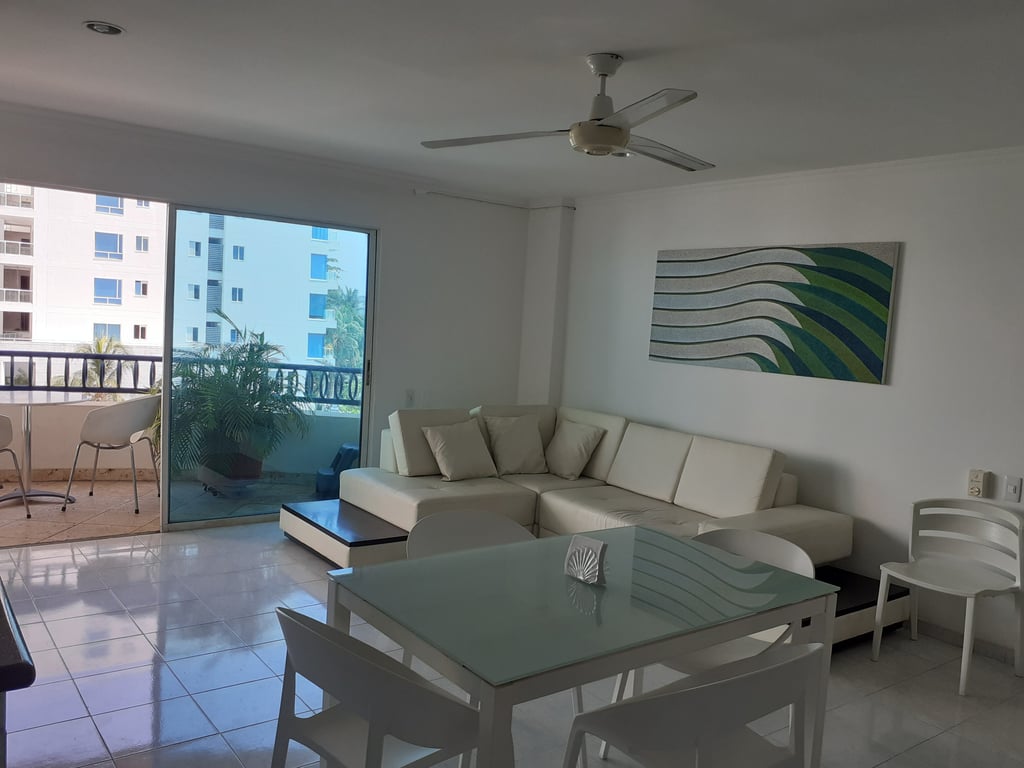 Apartamento cómodo con luces naturales, salida directa a la playa, amoblado en muy buen estado, con buenos acabados, con buena iluminación y ventilación, parqueadero privado, excelente balcón con vista hacia el viaducto, cercano al mar, restaurantes y a diez minutos del centro histórico. El edificio cuenta con piscina y portería las 24 horas, vías en buen estado y de fácil acceso, sector residencial, muy tranquilo, ambiente acogedor, ideal por su cercanía a la naturaleza, el mar. Ubicado en la zona norte, con salida a la playa, se encuentra cerca del aeropuerto Rafael Núñez y centro histórico. Cuenta con excelente vías de acceso.