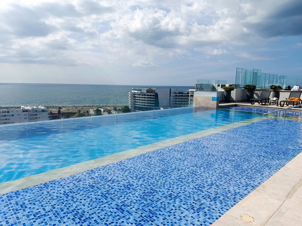 Apartamento en edificio con portería y vigilancia privada las 24 horas, cerca de centros comerciales, al aeropuerto, ciudad amurallada y playas, en vía principal de fácil acceso, inmueble con buenos acabados y espacios bien organizados, cuenta con pisos en porcelanato, paredes estucadas y pintadas, cielo raso en placa, cocina enchapada integral, closets completos en las habitaciones y aires acondicionados, baños enchapados con sus divisiones en vidrio templado, parqueadero cubierto y deposito, buena iluminación y ventilación, excelente vista a zona social y al mar, el edificio cuenta con espacio social, salón de juegos, baño turco, jacuzzi, baños, piscina de adultos, piscina de niños, gimnasio, teatrino, lobby y recepción.