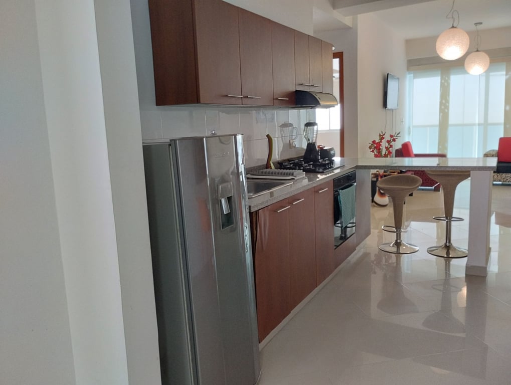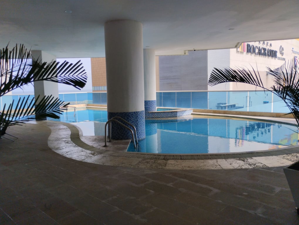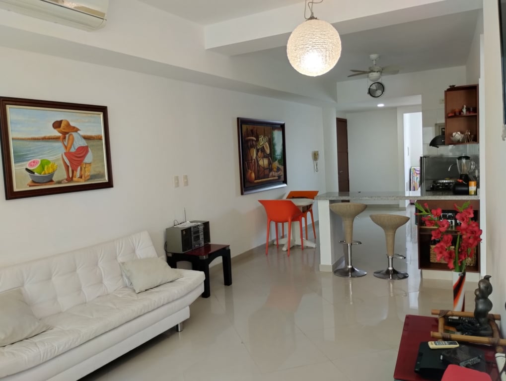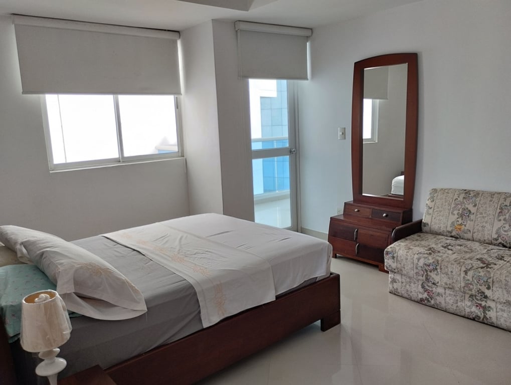 Apartamento amoblado con fácil llegada y salida de Bocagrande. Excelente ubicación, amplios espacios, buena estructura, bien distribuido, con buena iluminación y ventilación, baño en cada una de las habitaciones principales, vías de acceso en buen estado, ubicado cerca de centros comerciales, zona bancaria y supermercados; a solo 5 minutos del Centro Histórico, a pocos pasos del mar. Edificio cuenta con piscina, salón social, portería, vigilancia 24 horas, sector residencial, muy tranquilo, monitoreo policial permanente.