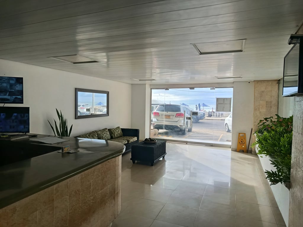 Apartamento amoblado, con buena iluminación y ventilación, con vista al mar, ubicado en un tercer piso, además el edificio cuenta con portería las 24 horas, a solo un paso de la playa, a solo cinco minutos de la ciudad amurallada y el centro histórico, a diez minutos del aeropuerto, vías de fácil acceso.