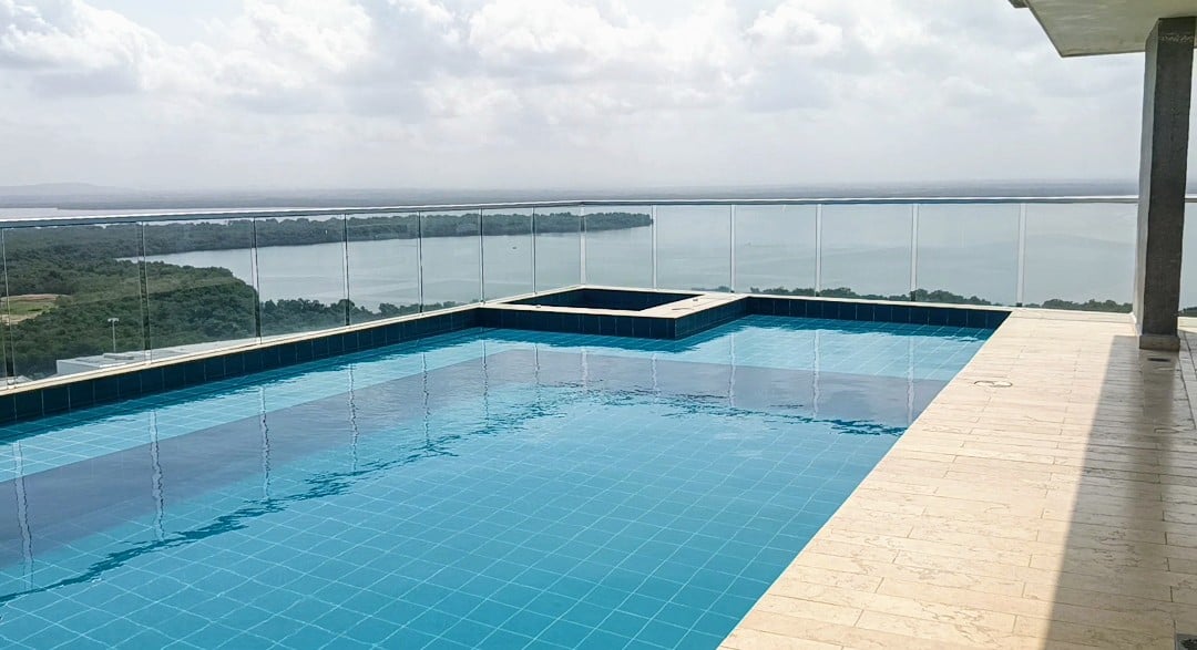 Apartamento en edificio con portería y vigilancia privada las 24 horas, cerca al aeropuerto, Ciudad Amurallada y Playas, en vía de fácil acceso, inmueble con buenos acabados y espacios bien organizados, cuenta con pisos en porcelanato, paredes estucadas y pintadas, y otras rusticas, cielo raso en placa, cocina integral, closets completos en las habitaciones, y con AA Minisplit, baños enchapados con sus divisiones en vidrio templado, parqueadero cubierto, buena iluminación y ventilación, excelente vista al Mar, el edificio cuenta con espacio social, baño Turco y Sauna, baños, piscina de adultos, piscina de niños, gimnasio, lobby y recepción.