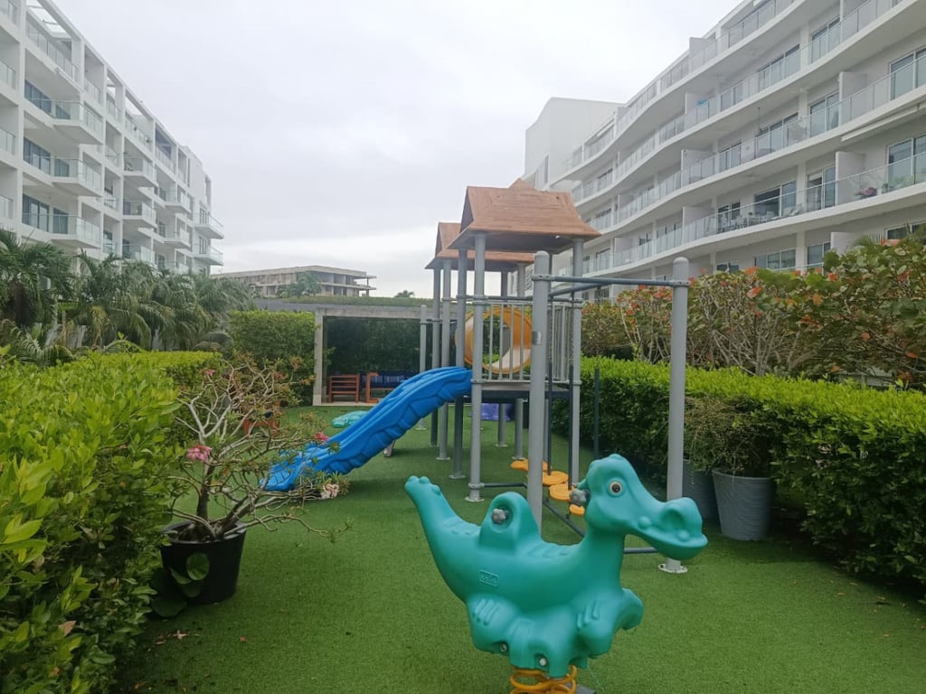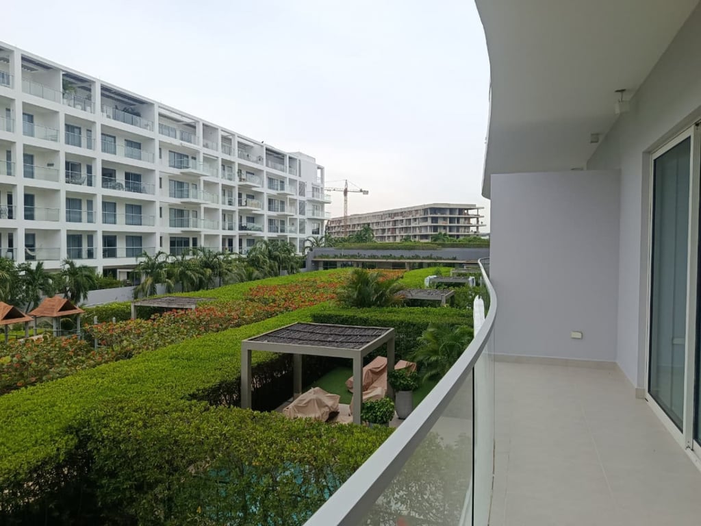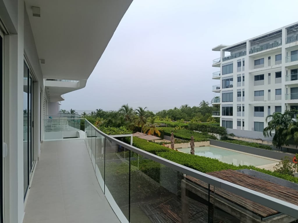 Apartamento con excelentes acabados, buena ventilación, ubicado en el segundo piso en un edificio de lujo con todas las amenidades, piscina para niños y adulto, gimnasio, salón social, parque infantil, portería las 24 horas, salida directa a la playa.