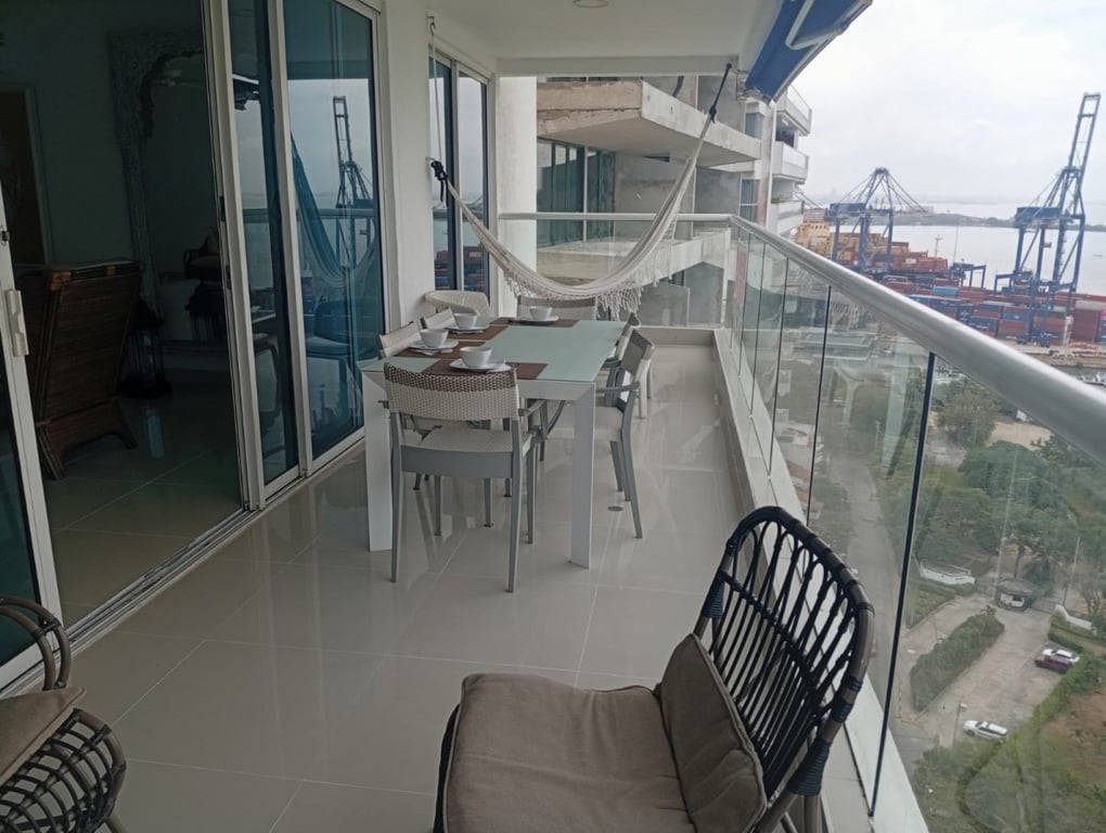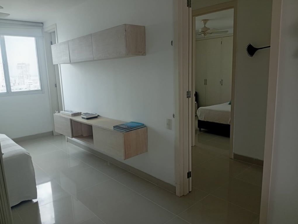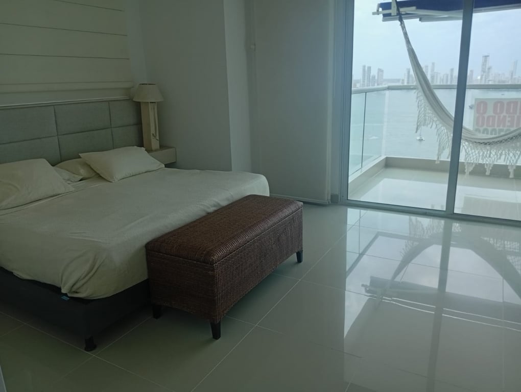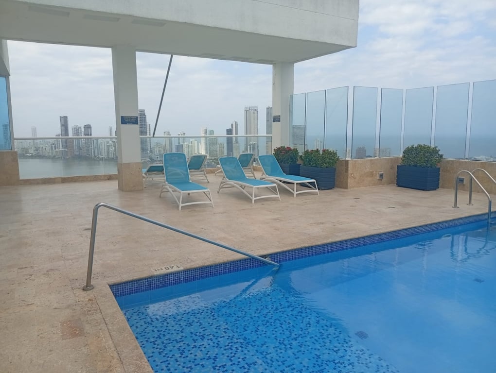 Apartamento con buenos acabados, pisos en porcelanatos, paredes estucadas con una espectacular vista a la bahía, a pocos minutos de la ciudad amurallada, en excelente estado, bien conservado, con buenos acabados, buena iluminación y ventilación, buena estructura, bien distribuido, con vista a la bahía. El edificio cuenta con portería las 24 horas y piscina, ubicado cerca a la bahía, restaurantes, colegios, comando de la policía nacional, vías en muy buen estado, de fácil acceso, facilidad de transporte público, sector muy tranquilo.