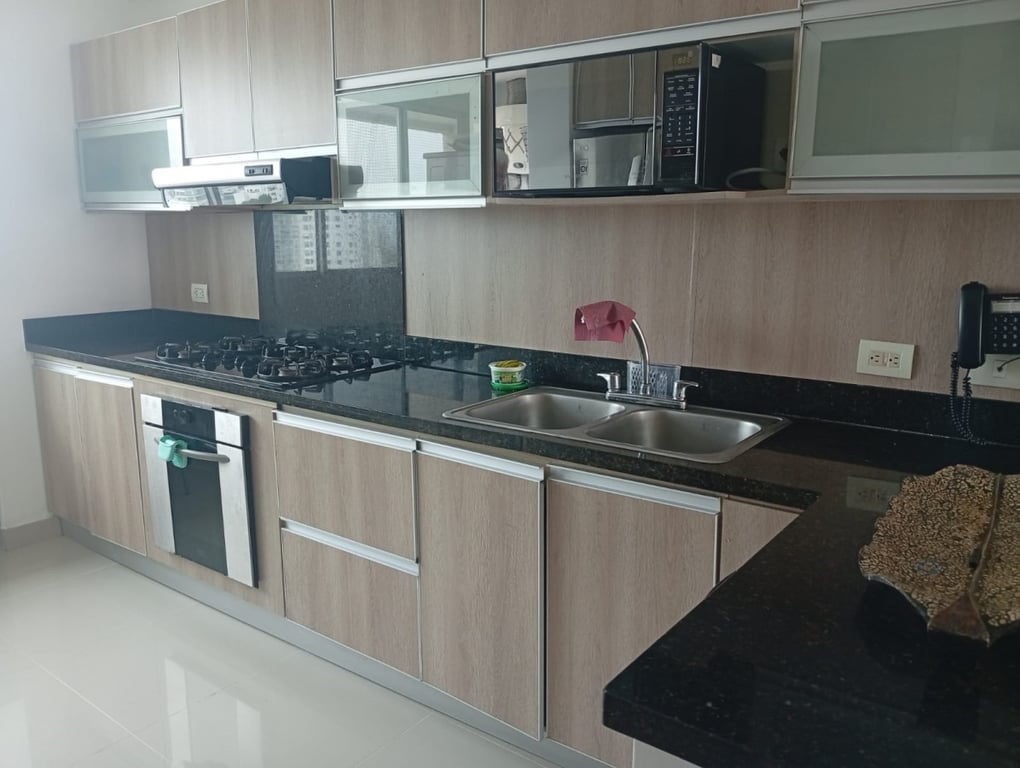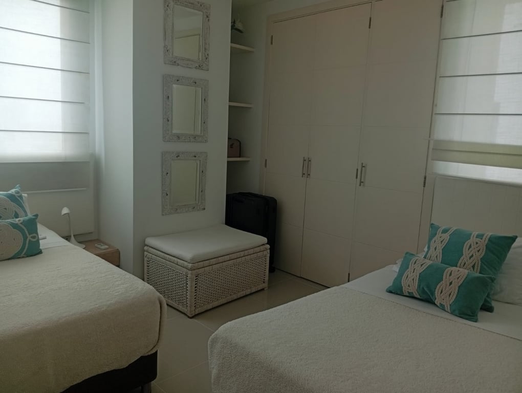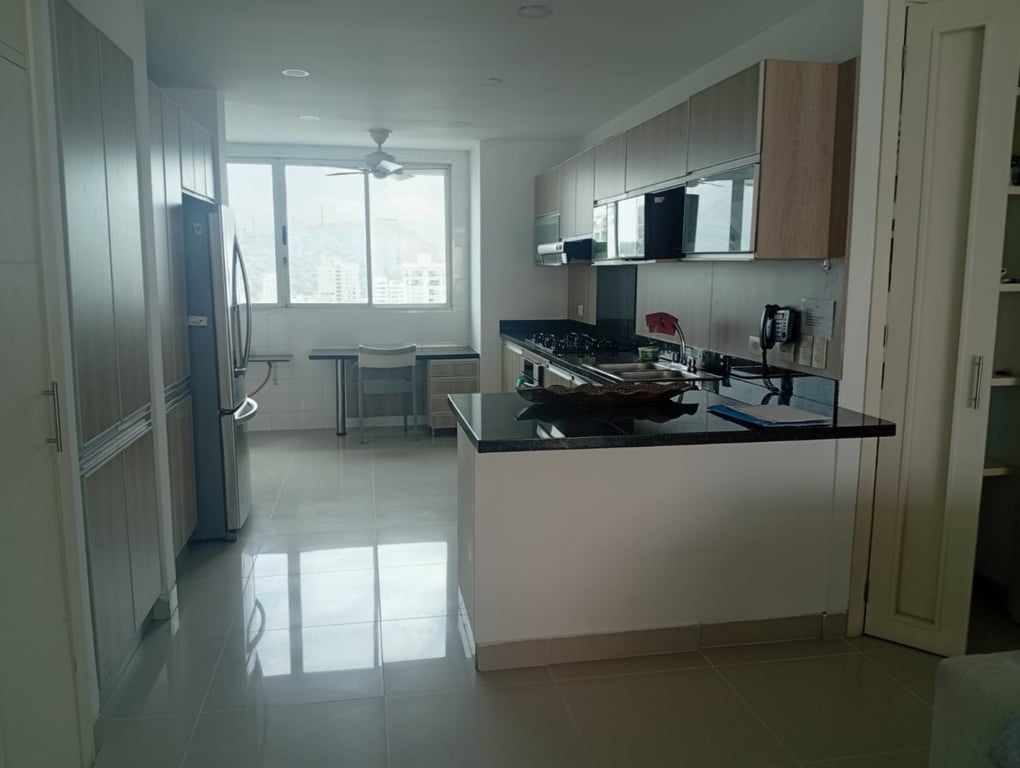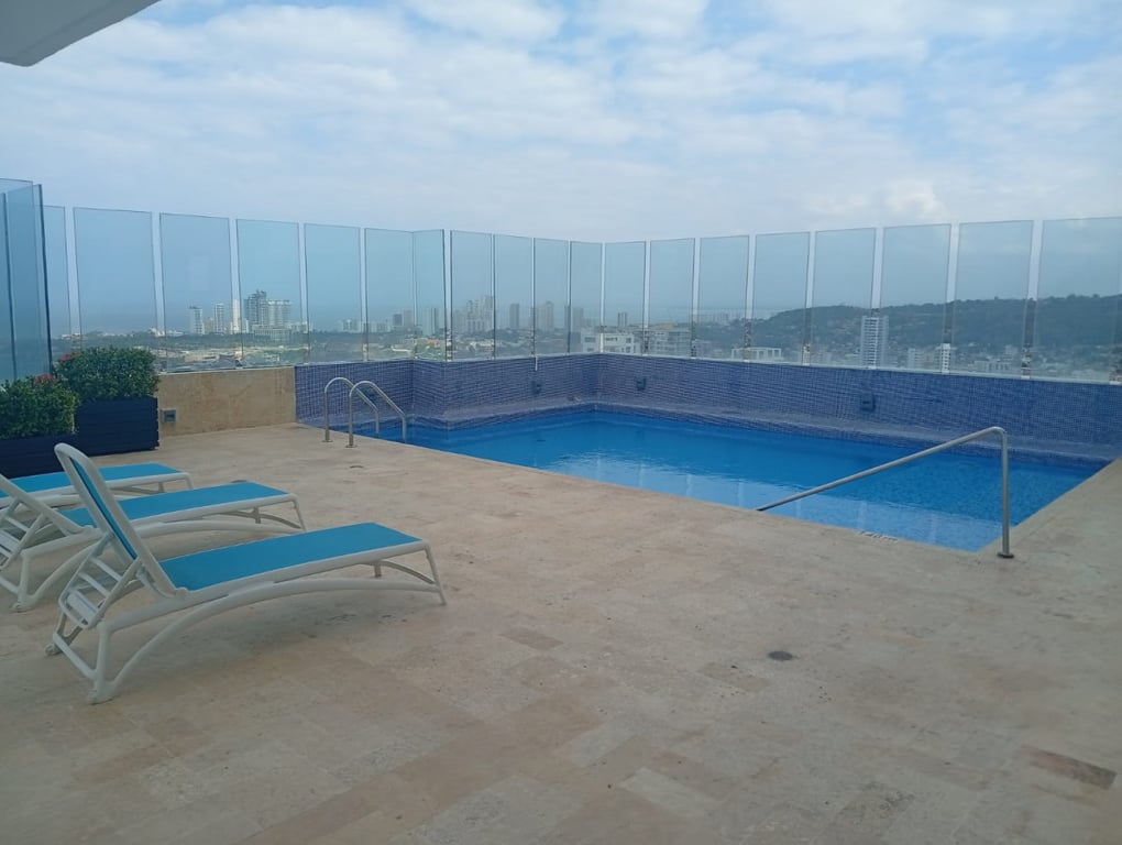 Apartamento con buenos acabados, pisos en porcelanatos, paredes estucadas con una espectacular vista a la bahía, a pocos minutos de la ciudad amurallada, en excelente estado, bien conservado, con buenos acabados, buena iluminación y ventilación, buena estructura, bien distribuido, con vista a la bahía. El edificio cuenta con portería las 24 horas y piscina, ubicado cerca a la bahía, restaurantes, colegios, comando de la policía nacional, vías en muy buen estado, de fácil acceso, facilidad de transporte público, sector muy tranquilo.