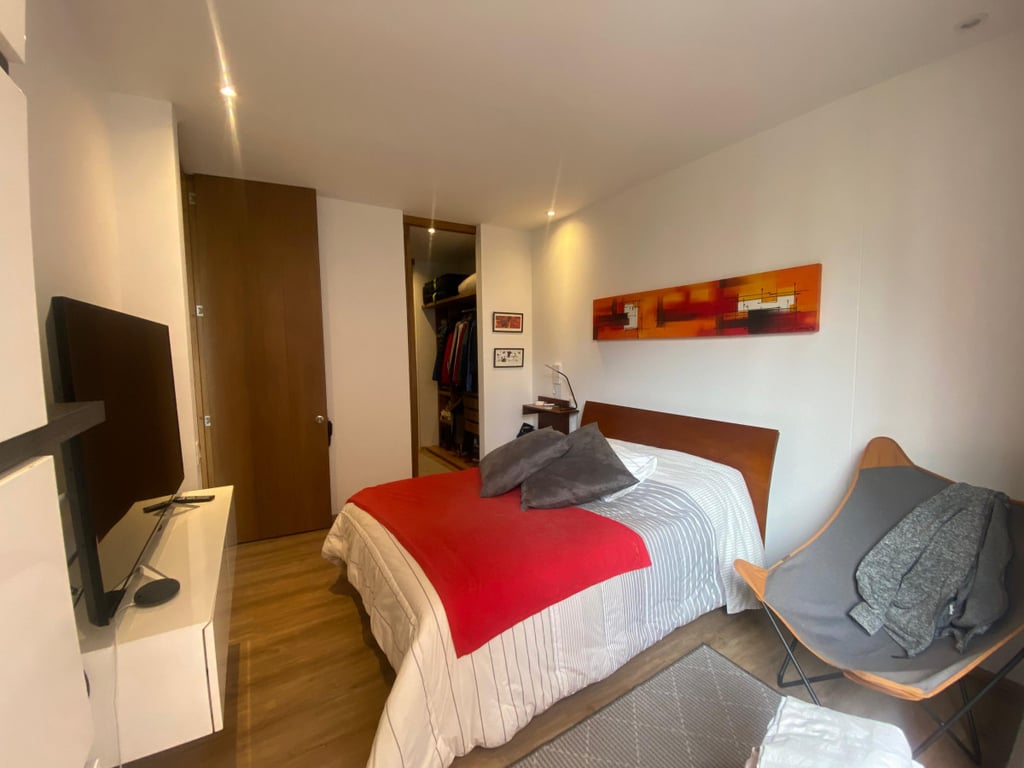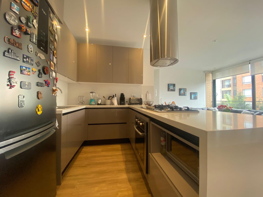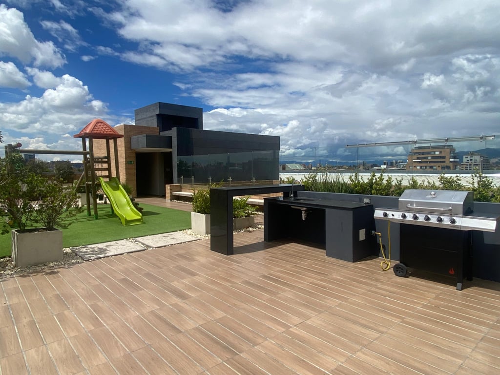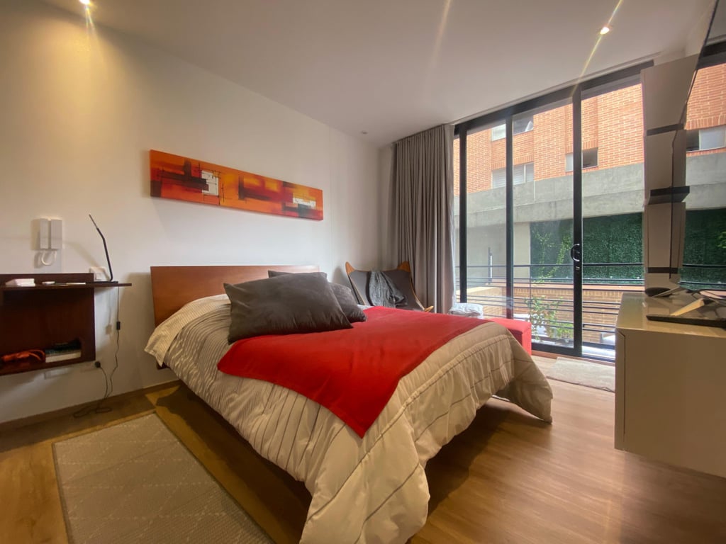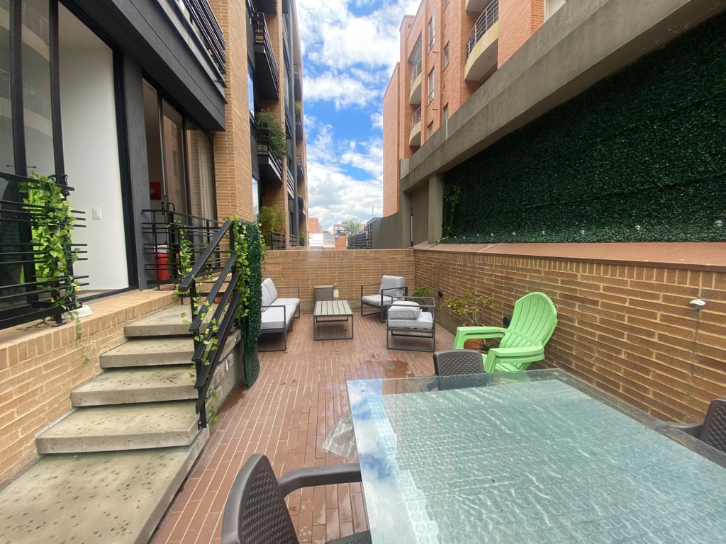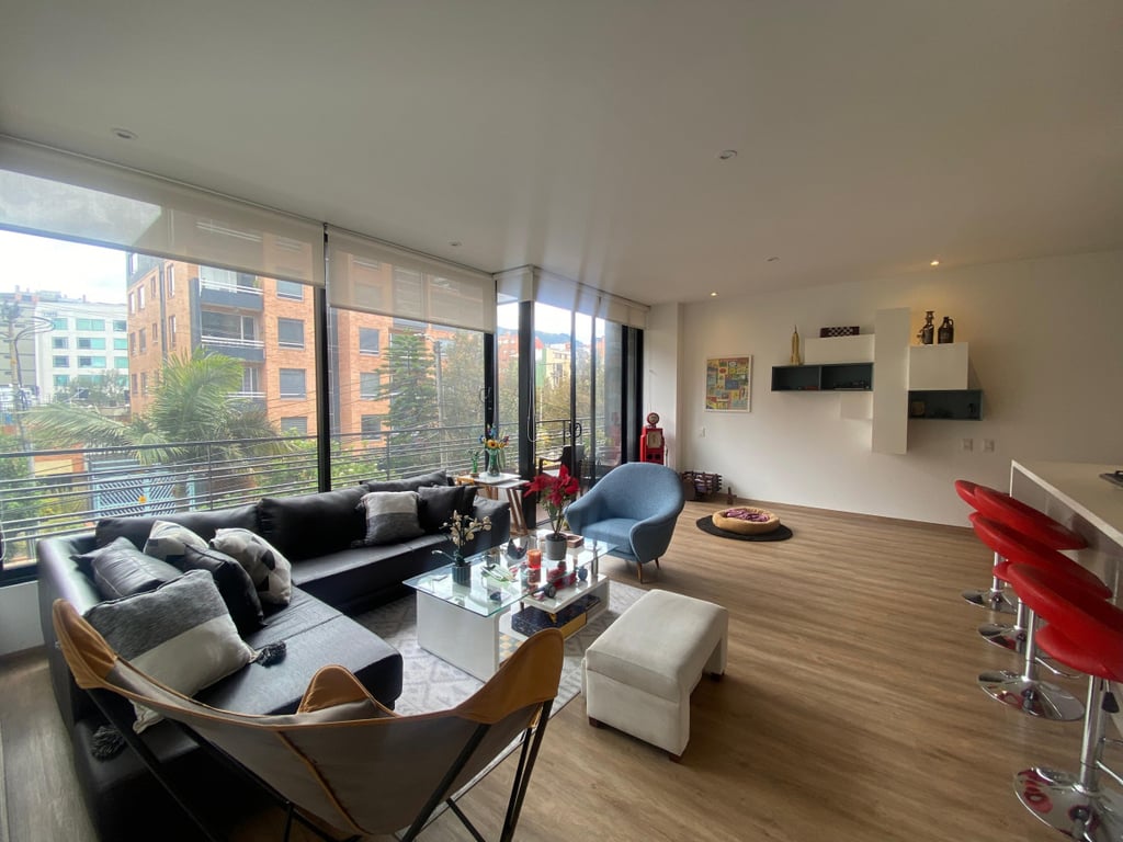 Espectacular apartamento, ubicado en exclusivo sector de Bogotá, cómodas vías de acceso como: Calle 100, Calle 109, Calle 106, Avenida Carrera 15, Avenida Carrera 9 y Avenida Carrera 19, Autopista Norte, además cerca al CC Santa Ana. Apartamento en segundo piso, vista exterior, altura libre de 2.70 mts, excelente iluminación y ventilación natural, pisos en madera laminada. Moderno edificio de 6 pisos más cubierta, cuenta con recepción tipo lobby, vigilancia 24/7, gimnasio, coworking, terraza con zona de BBQ y parque infantil, cancha de squash, salón de juegos para niños, salón social, mini sala de cine.