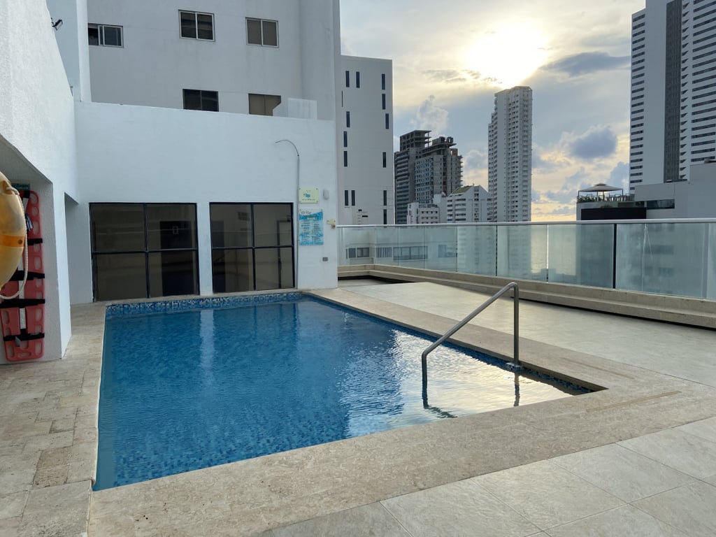 Apartamento con excelente ubicación en hermosa zona residencial, con amplios espacios, buenos acabados, hermosa vista a la bahía, muy cerca de la playa cercano a restaurantes, centro comerciales y hoteles.