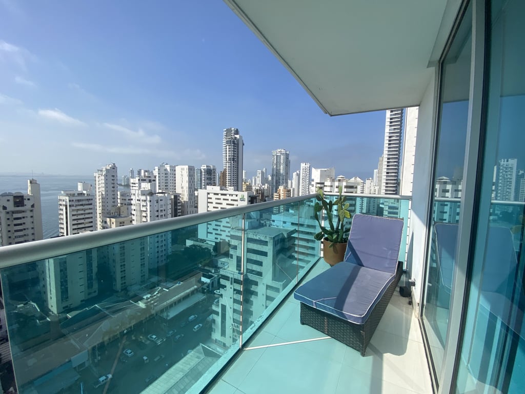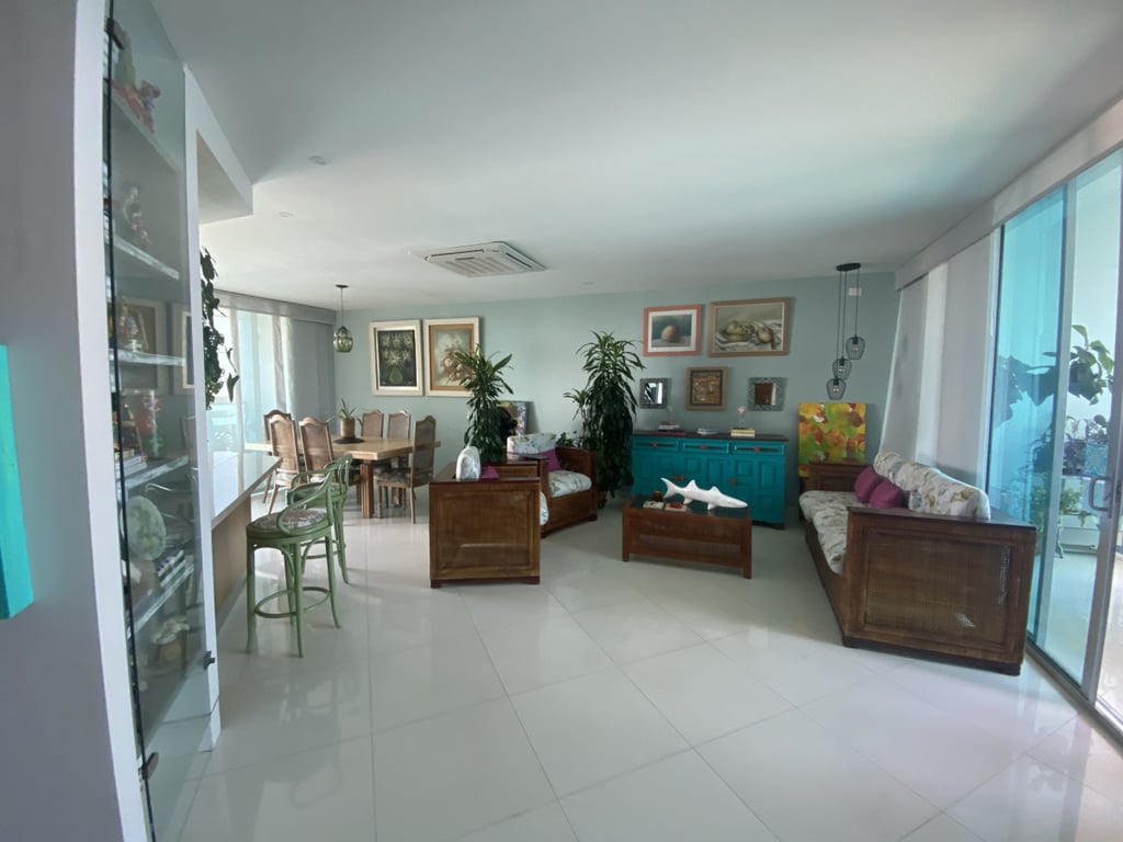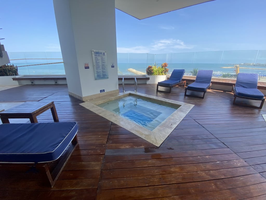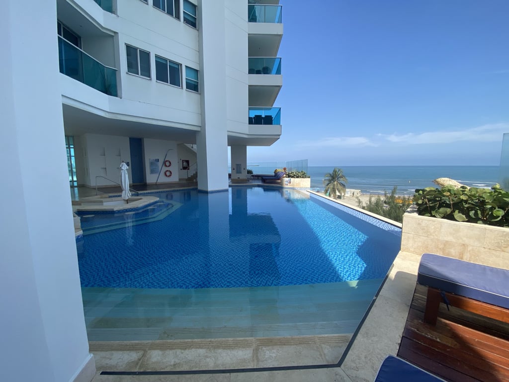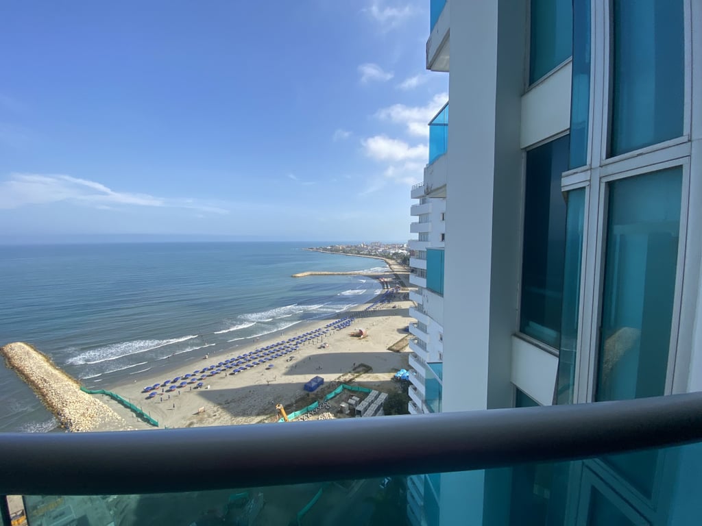 Apartamento con buena iluminación, con buenos acabados y excelente ubicación, primera linea a la playa, vista al mar y cerca a centros comerciales, bancos, gimnasios, supermercados. Edificio consta de: piscinas, solárium, sala comunal, parque infantil, terraza comunal, portería 24 horas, vista al mar. El edificio es residencial.