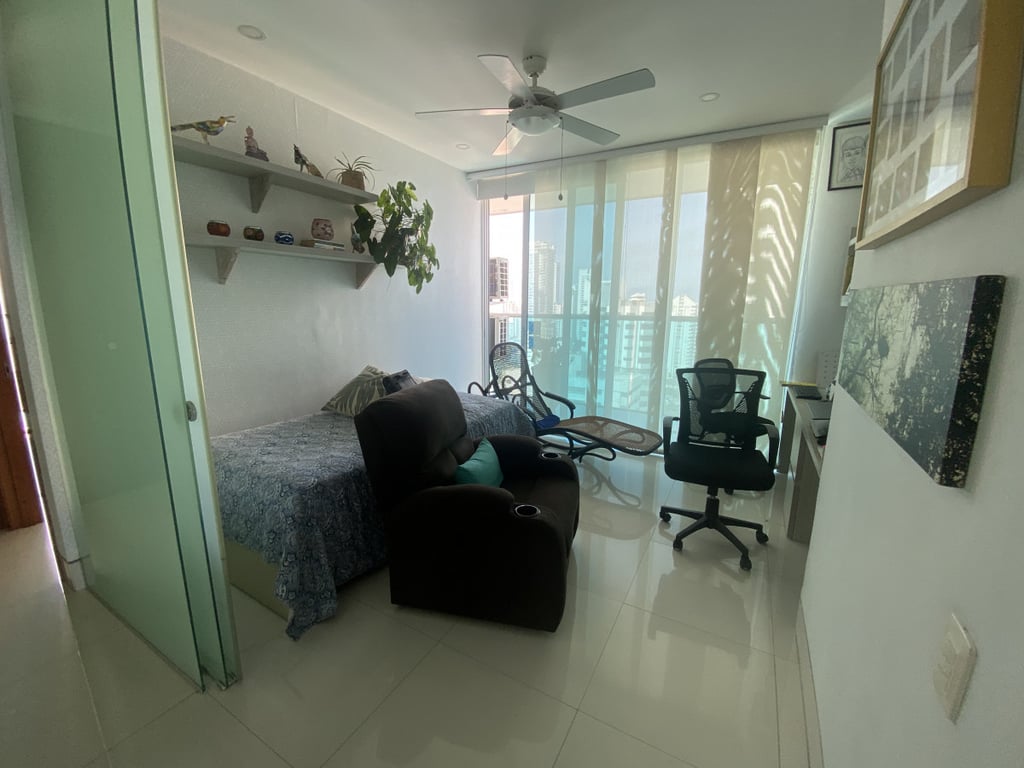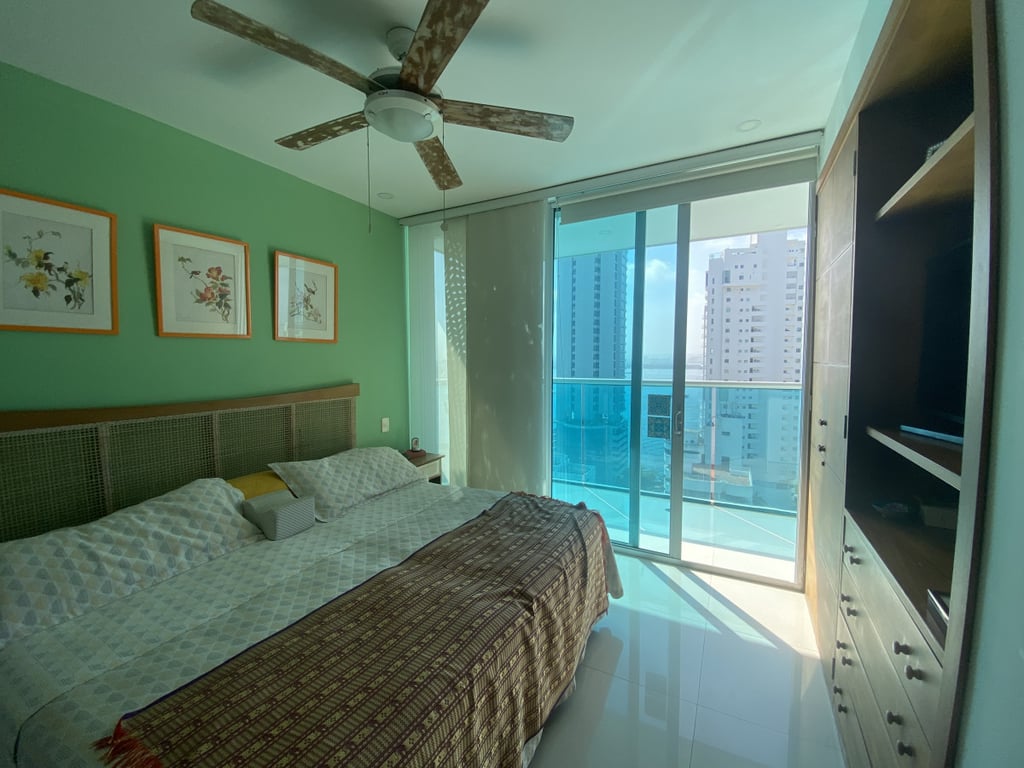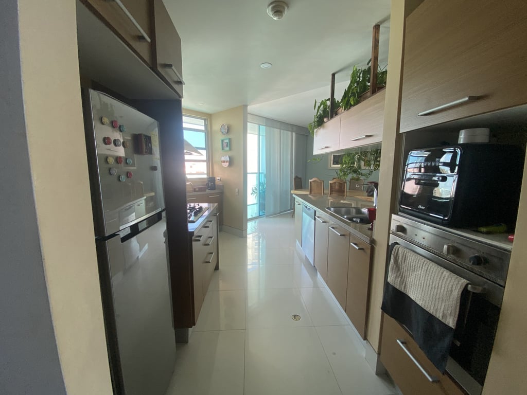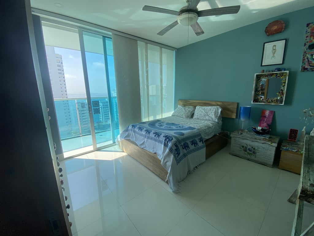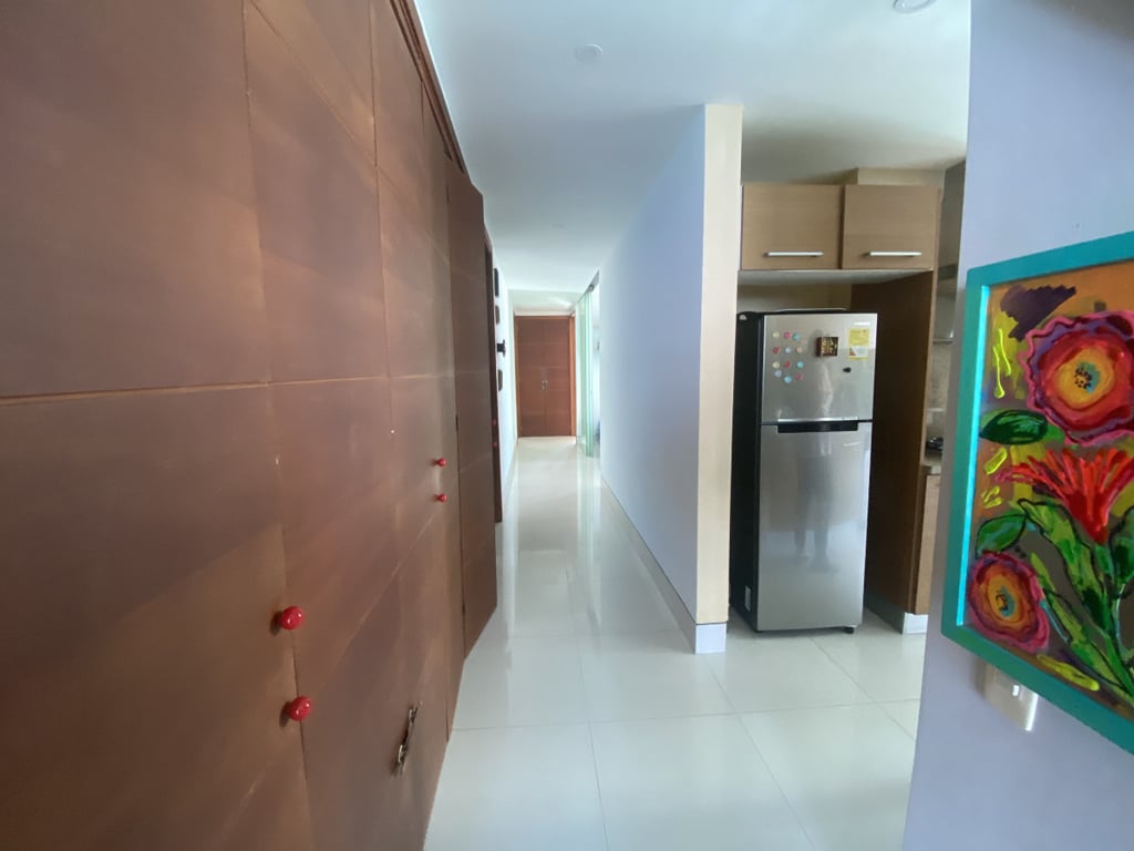 Apartamento con buena iluminación, con buenos acabados y excelente ubicación, primera linea a la playa, vista al mar y cerca a centros comerciales, bancos, gimnasios, supermercados. Edificio consta de: piscinas, solárium, sala comunal, parque infantil, terraza comunal, portería 24 horas, vista al mar. El edificio es residencial.