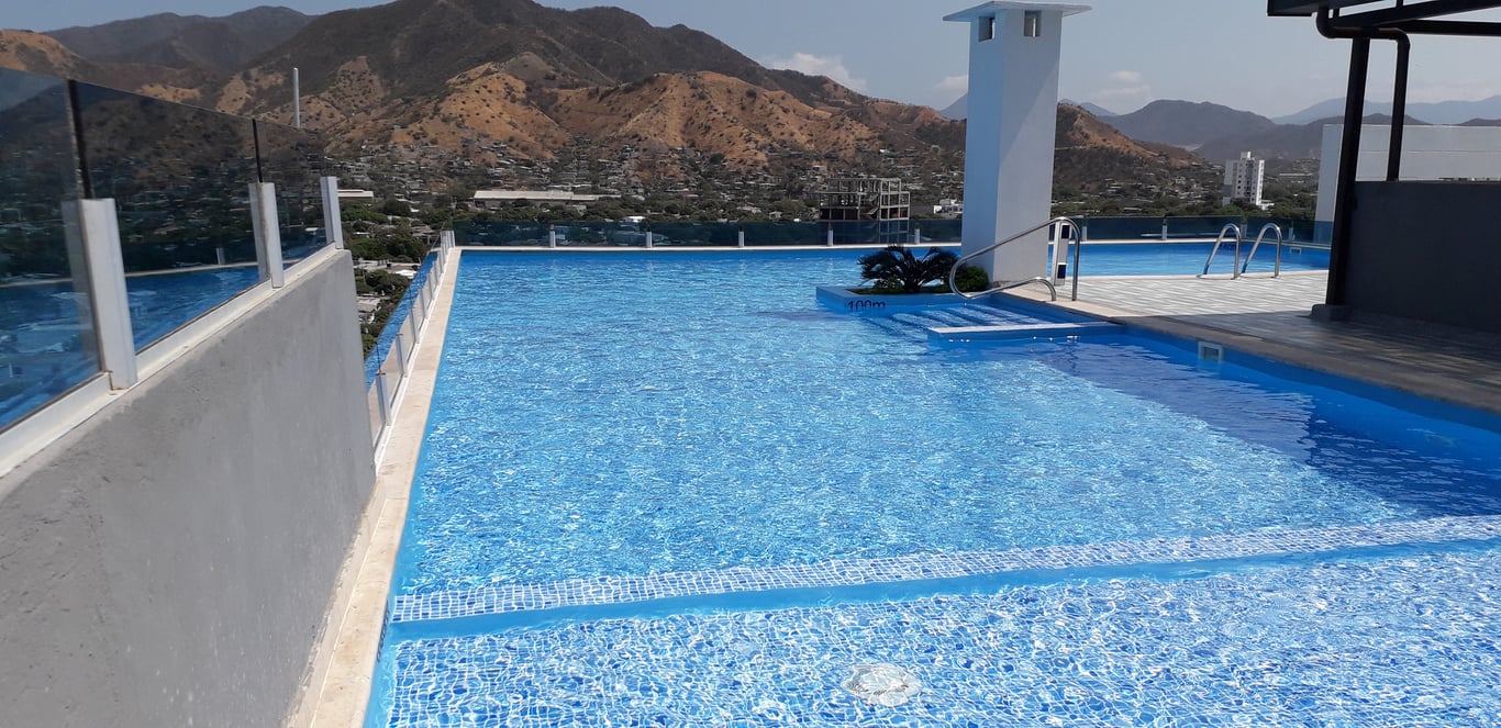 Apartamento nuevo con muy buenos acabados pisos en cerámica ventanas en aluminio vidrio, baños enchapados, cocina integral, buena ventilación e iluminación, con variedad de zonas sociales, gimnasio, piscina, salón social, área de bbq, parque infantil, con excelentes vías de acceso, como lo es la avenida libertador y la carrera 19 cerca, a super mercados, tiendas, droguerías, a solo 5 minutos del centro histórico y a 15 minutos del rodadero.