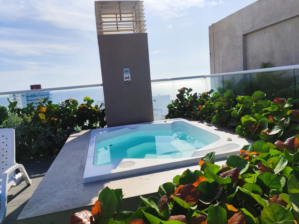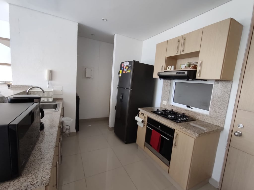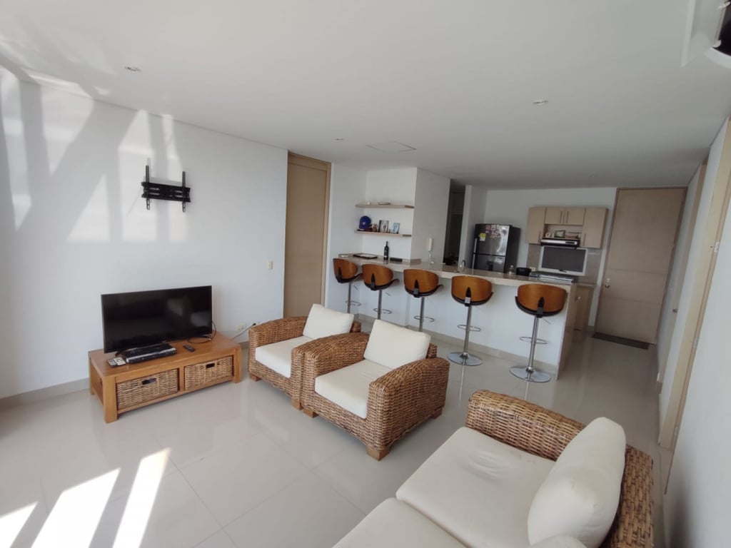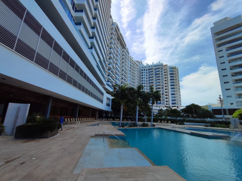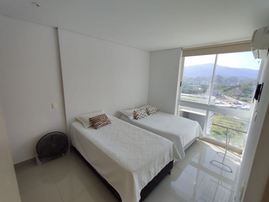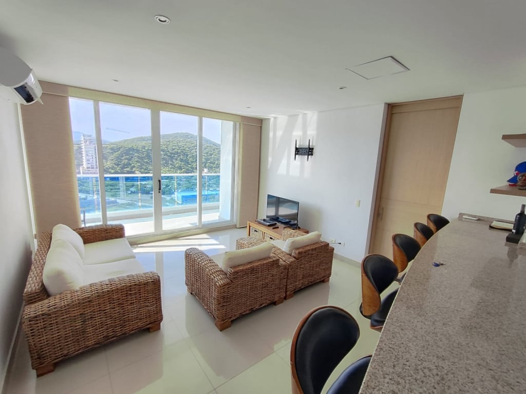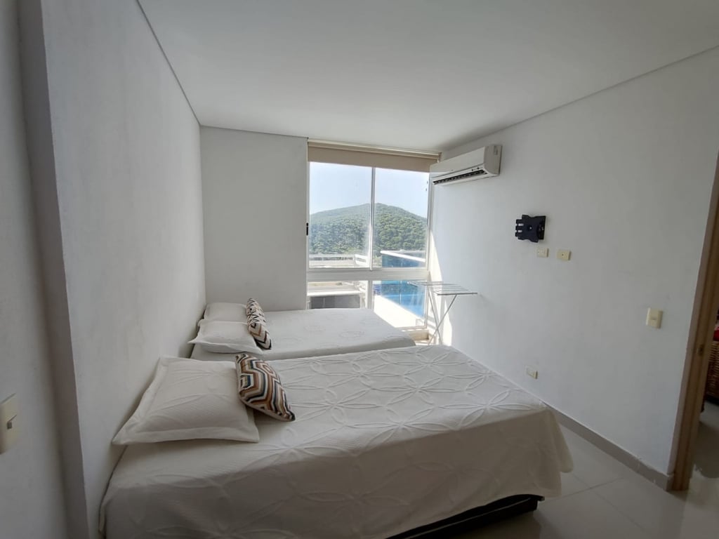 Apartamento amplio completamente amoblado, ubicado en conjunto cerrado en playa salguero, posee dos alcobas, cada una con baño, baño social con ducha, sala comedor y cocina integral. El edificio posee amenidades como piscinas adultos y niños, jacuzzis, BBQ, salón social, canchas sintéticas, golfito, zona de juegos para niños, restaurante, spa, sauna tiene salida a la playa, recepción, terraza y mirador en el ultimo piso de la torre 4 del mismo. Las torres tienen permiso para arriendo turístico.