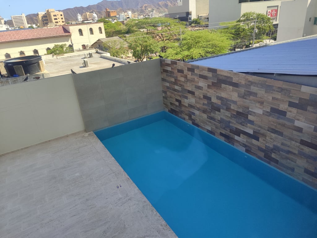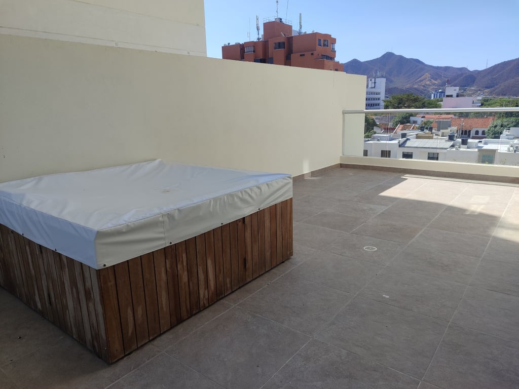 Hermoso apartamento para estrenar, con amplio balcón con Jacuzzi. Ubicado en céntrico y exclusivo lugar de la ciudad, cerca la Cámara de Comercio de Santa marta, La Bahía de santa marta, zona bancaria, comercial, gastronómica, excelente acceso a transporte, Supermercado Carulla, cuenta con vigilancia privada, deposito, calentador, 2 parqueaderos.
