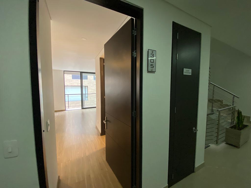 Excelente apartamento ubicado en tercer piso, lateral exterior, con excelente iluminación y ventilación natural. Al ingresar encontramos la zona social con balcón, sala comedor, baño social, tiene dos alcobas, las dos con baño privado, la principal con walking closet y balcón; Cocina abierta con buen espacio para almacenar, amplía área de labores. Tiene dos parqueaderos en línea y depósito. El edificio cuenta con salón social, gimnasio dotado, linda terraza con vista panorámica, BBQ, parqueaderos de visitantes, vigilancia 24 horas y CCTV.