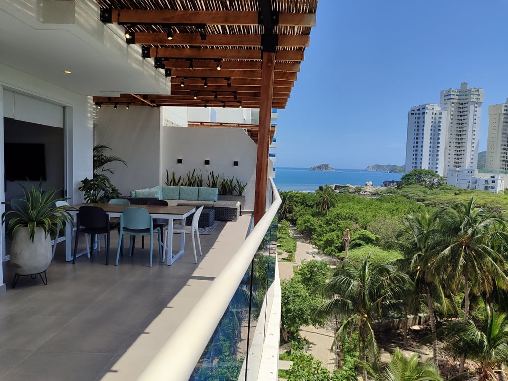 Apartamento nuevo con muy buenos acabados pisos en cerámica ventanas en aluminio vidrio, baños enchapados, cocina integral, buena ventilación e iluminación, con variedad de zonas sociales, gimnasio, piscina, salón social, área de bbq, parque infantil, con excelentes vías de acceso, como lo es la avenida libertador y la carrera 19 cerca, a super mercados, tiendas, droguerías, a solo 5 minutos del centro histórico y a 15 minutos del rodadero.
