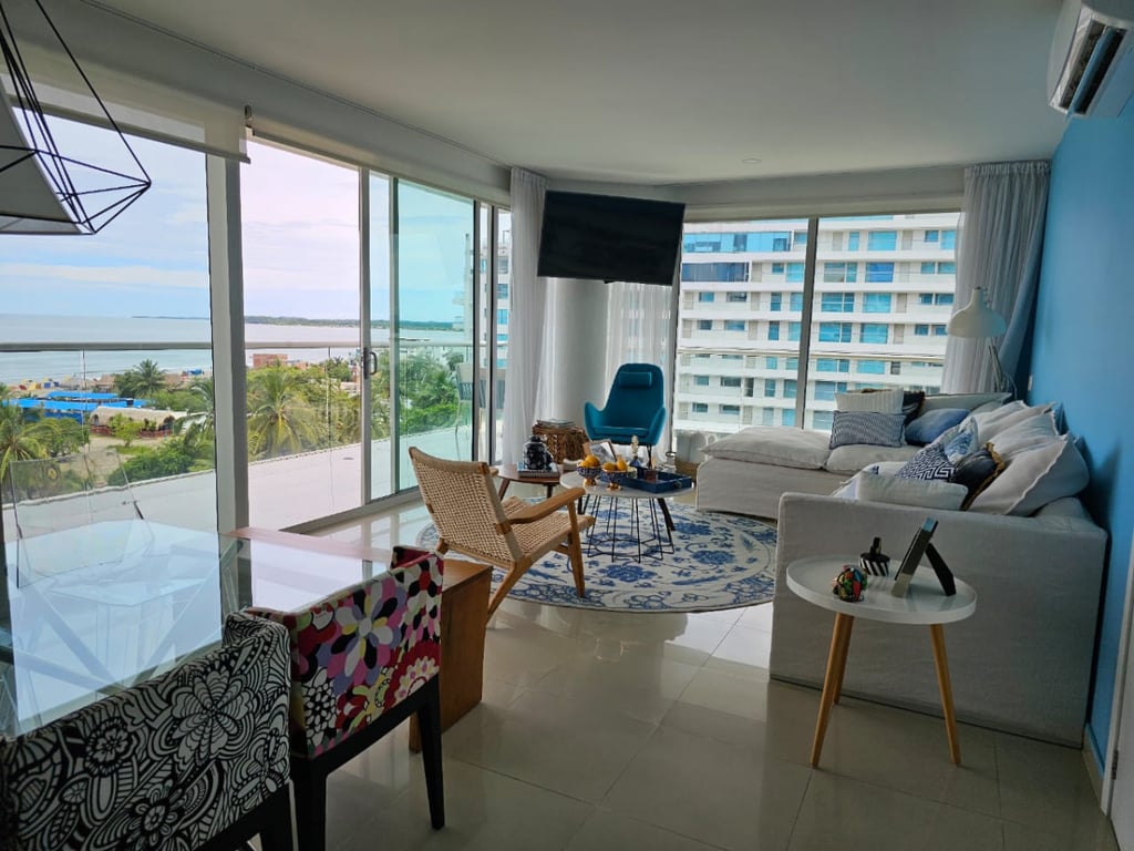 Apartamento Amoblado en venta ubicado en uno de los sectores mas exclusivos turísticos con acceso directo a playa azul; zona Morros ,vista al mar y a la Ciénaga, con una espectacular terraza amplia, muy buena iluminación y ventilación cuenta con unas amenidades espectaculares para disfrutar en familia y amigos, que esperas para invertir en zona de alta valorización en un Apartamento con amplios espacios y lo mejor con el permiso de vivienda turística para rentas cortas.