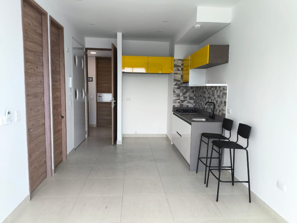 Apartamento de una alcoba amoblado, fresco e iluminado, esta ubicado en conjunto cerrado con seguridad privada las 24 horas. Cuenta con piscina, salón social, parque para niños parqueadero comunales y cuenta con una hermosa vista panorámica en el ultimo piso de la torre. El inmueble esta cerca a las playas de salguero y a unos minutos de las playas de pozos colorados.