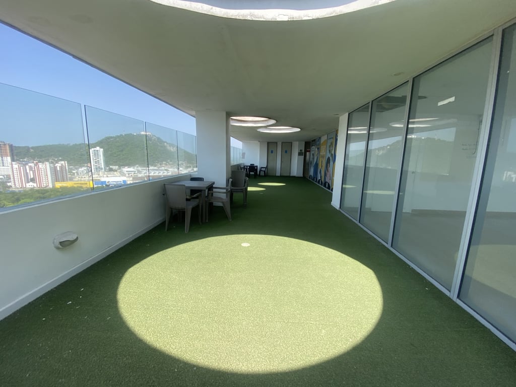 Amplia oficina ubicada en el sector de Manga, con agradable vista a la bahía. Dispone de cómodos espacios para oficina o consultorio, excelente iluminación y estratégica ubicación cerca de la DIAN y cerca de la sociedad portuaria. La Oficina cuenta con 2 espacios independientes y dos salones