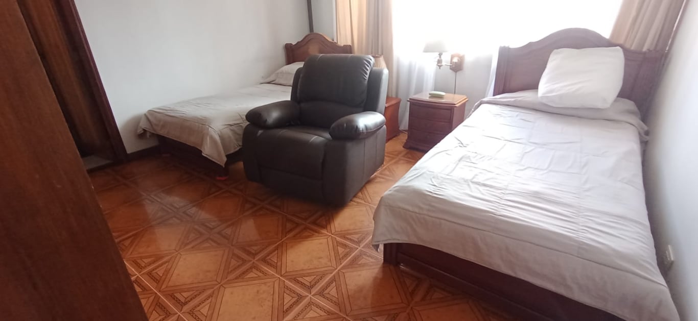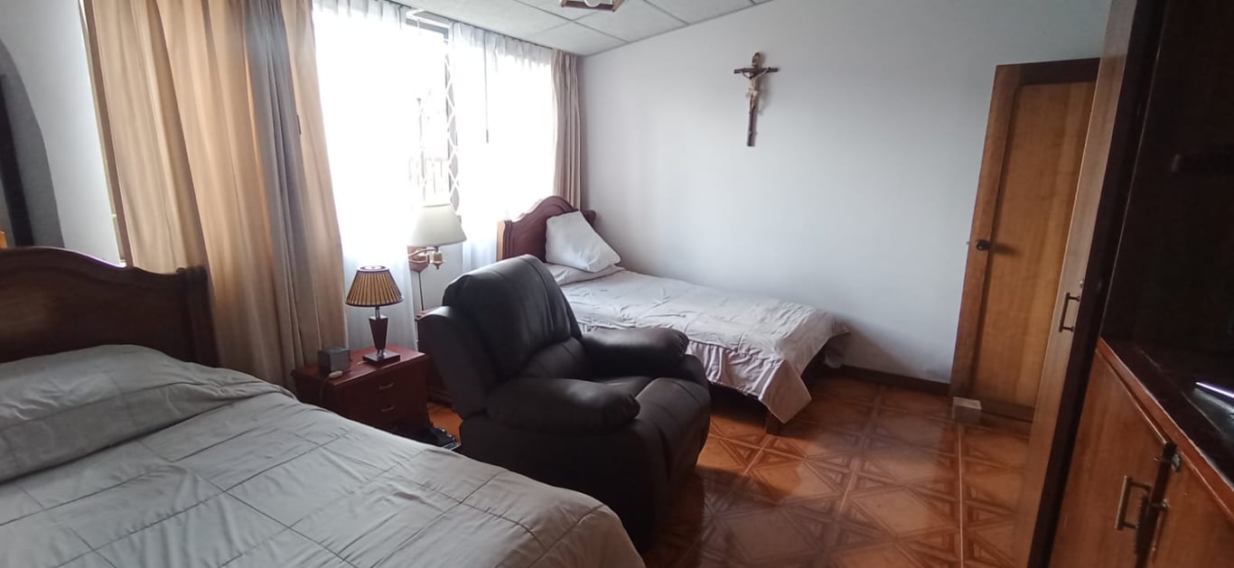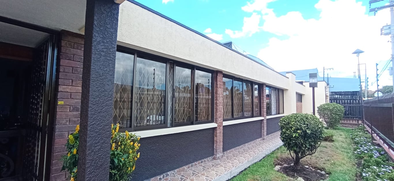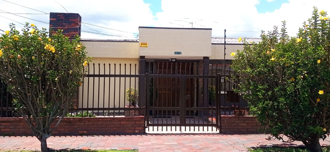 Casa esquinera de un solo nivel en sector residencial, rodeada con hermoso ante jardín por calle y carrera, todo con reja de seguridad. Cinco parqueaderos, recibidor y hall, chimenea, amplia, área de labores independiente. Todas las ventanas de la casa son exteriores con reja, lo cual brinda excelente iluminación y ventilación natural, pisos en cerámica y techos en drywall. Ubicada en el prestigioso barrio Tierra linda del norte de Bogotá, cerca de la Avenida calle 127 y la Autopista norte. Cerca a los C.C. Bulevar Niza y Unicentro.