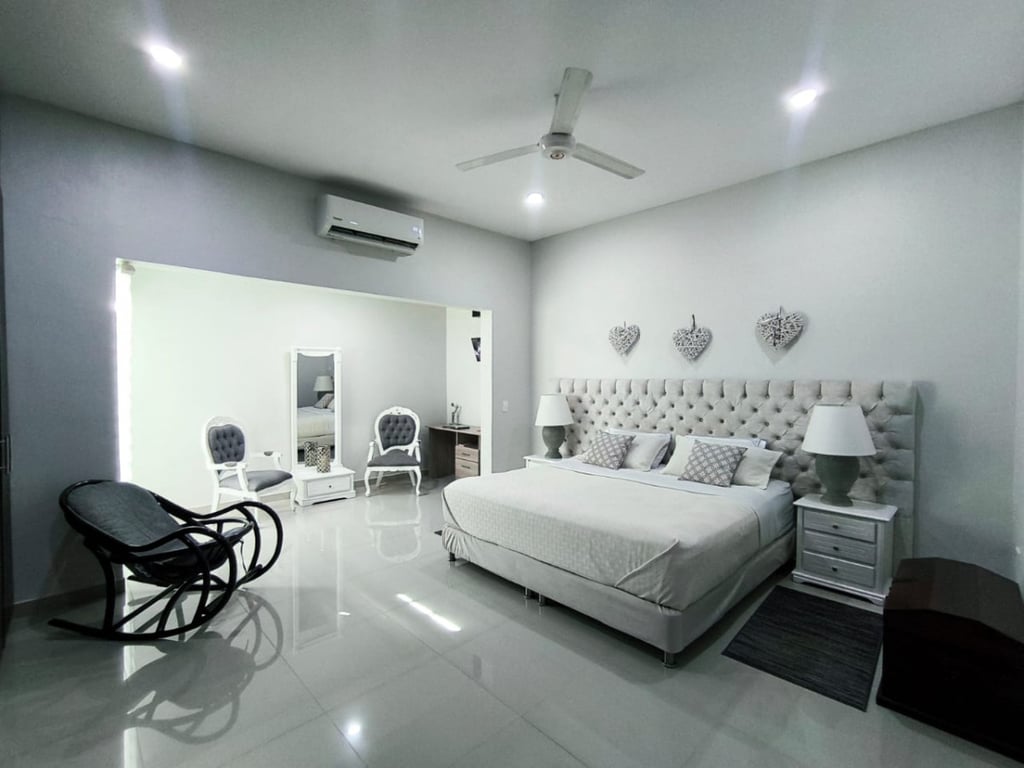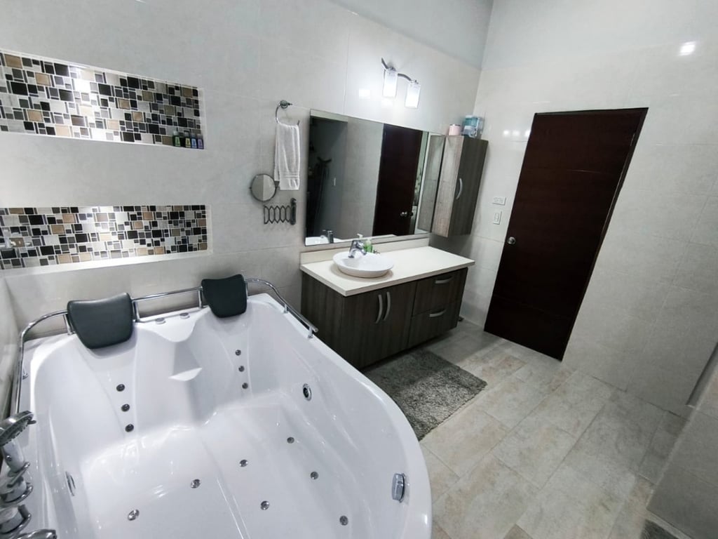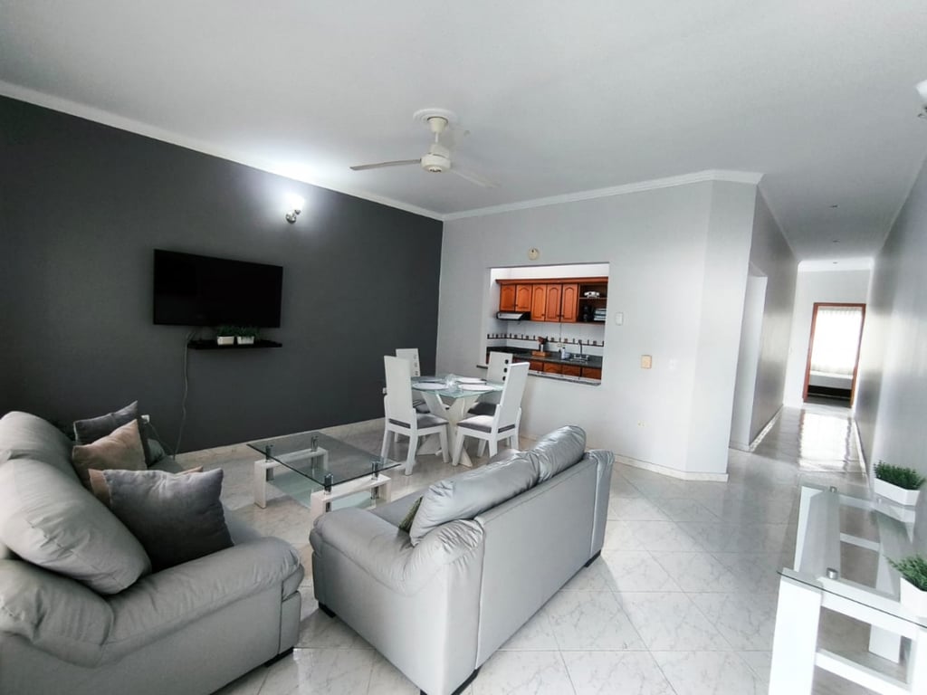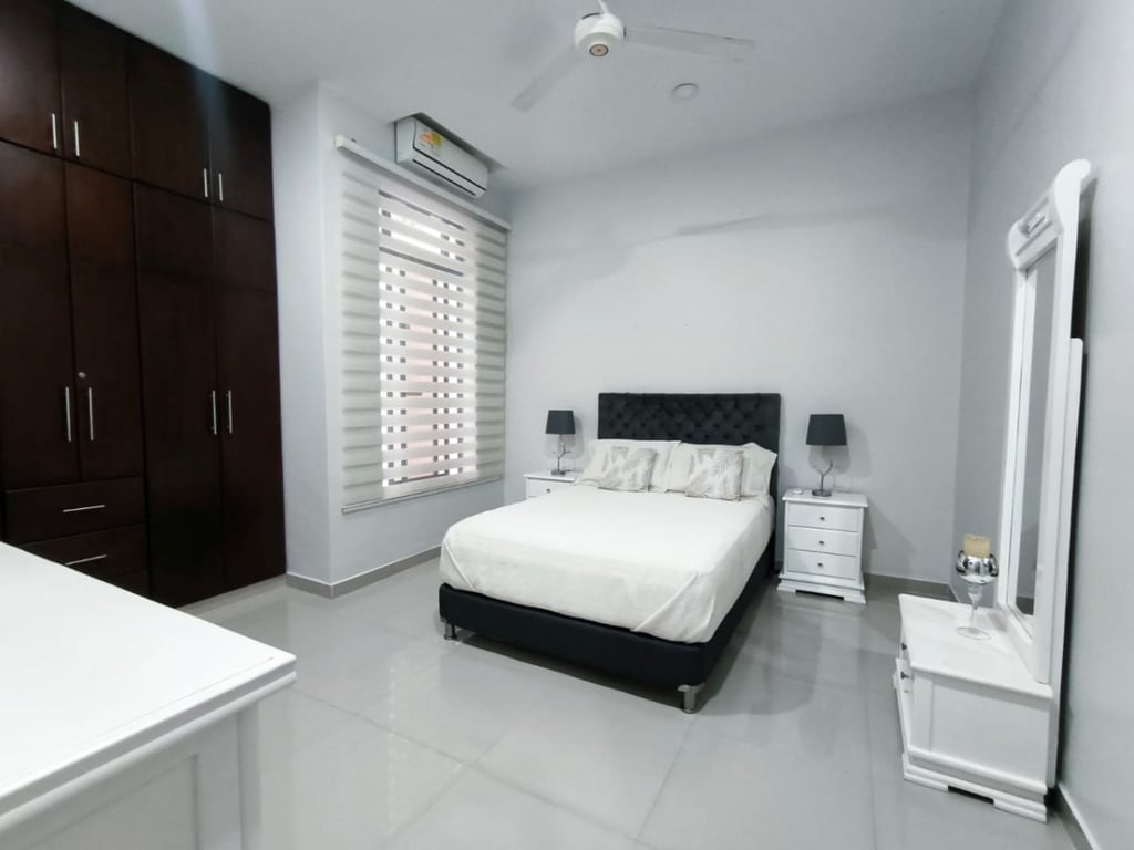 Casa de dos pisos ubicada en el sector turístico de Bello Horizonte. El inmueble es ideal para uso turístico, ya que cuenta con las siguientes zonas comunes: piscina, zona de BBQ, área de parqueo y baños. La casa principal es bastante amplia, con buena ventilación e iluminación, y cuenta con tres alcobas con aires acondicionados y excelentes acabados. Adicionalmente, el segundo piso dispone de dos apartamentos completos y amueblados. Cada apartamento tiene dos alcobas con aires acondicionados y dos baños. Este inmueble se encuentra a unos 10 minutos de las playas de Bello Horizonte y cuenta con un lote disponible para futuras construcciones.